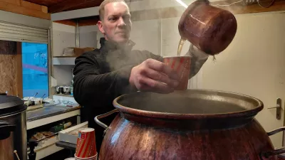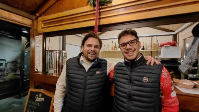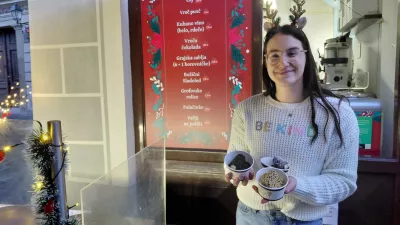 Med stojnicami srečamo Kristijana Povirka iz Starega piskra, ki nadaljuje tradicijo, poznano že s Pogačarjevega trga. Njihovo kuhano vino ni industrijski izdelek, temveč rezultat skrbno izbranih vin iz Štajerske, okolice Konjic in Goriških brd ter domačih začimb. Belo vino dopolnjujejo viljamovka, med in bezgov sirup, rdeče pa rum in borovnice. Ponudbo zaokrožujejo marelično žganje z umetniškim kompotom, viljamovka ter slovenske klobase in hišne pečenice v rustikalnih bagetah. Povirk pravi, da se kakovost pozna – redne stranke se vračajo, obiskovalcev iz drugih krajev pa je letos še več, tudi zaradi pravljičnih vlakov.