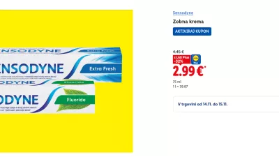 Z aplikacijo si zagotovite tudi zobno kremo Sensodyne z 32 odstotnim popustom, za 2,99 evra.