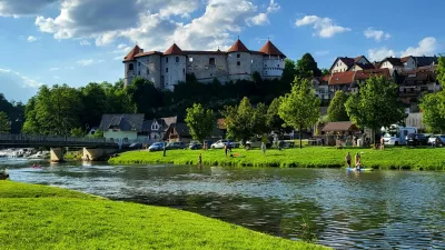 Prava rečna riviera pa obiskovalca pričaka pod mostom v Žužemberku, mestu, ki je ime dobilo prav po šumenju Krke. Stara nemška beseda sousen namreč pomeni šumeti. Na obeh bregovih reke je polno obiskovalcev, blazin, supov, kajakov ... Registrske tablice avtomobilov na parkirišču razkrivajo, da tu še zdaleč niso samo domačini. »Slišali smo, da je na morju polno sluzi, pa smo šli v nasprotno smer, v Suho krajino. Tukaj smo prvič in smo popolnoma navdušeni,« nam na hitro pojasni Ljubljančan, medtem ko nadzira otroka v vodi. V gostilni Koren so skoraj vse zunanje mize polne, tudi ležalniki tik ob reki. »To je šele začetek, v prihodnjih vikendih bo še veliko več gostov,« je zagotovila natakarica, ko je hitela točiti pivo. A na travniku ob reki s pogledom na žužemberški grad je dovolj prostora za vse. Podobno živahno je v vročih dneh tudi na kopališčih na Otočcu, Kostanjevici na Krki in drugje ob reki.