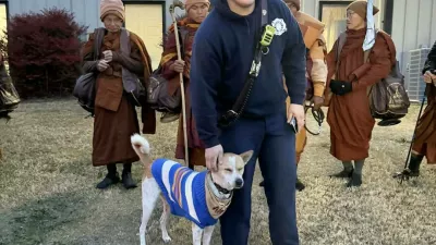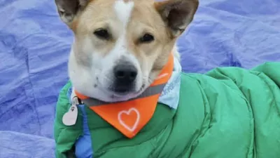Ker je na poti mraz, so ga menih primerno oblekli. Foto: FB/Aloka the Peace Dog