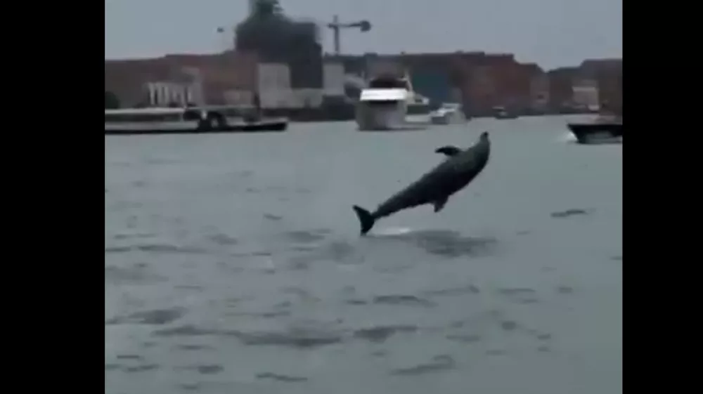 V Benetkah so delfine nazadnje opazili leta 2021 v času pandemije covida-19, ko je bil ladijski promet močno omejen.
