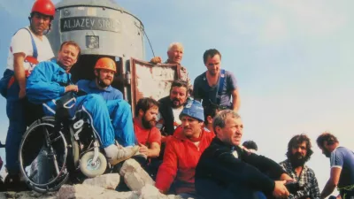 Tetraplegik Jože Globokar na vrhu Triglava, kar mu je uspelo s pomočjo Toneta Fornezzija - Tofa in skupine gorskih reševalcev z Janezom Brojanom na čelu. / Foto: Tone Fornezzi - Tof
