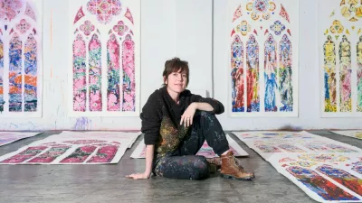 Kljub temu so v galeriji v Grand Palaisu, do katere vodi krožno stopnišče v treh nadstropjih, stene obložene z bleščečimi maketami novih oken v naravni velikosti. Izdelane so s črnilom na papirju in ponujajo vpogled v predlagano podobo vitražev.