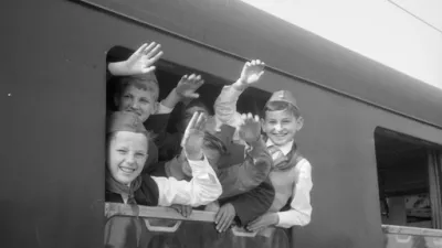 Slovesen sprejem štafete mladosti pri kavarni Evropa leta 1961 / Foto: Marjan Ciglič, hrani Muzej novejše in sodobne zgodovine Slovenije