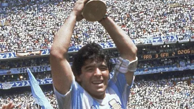 Fotografija iz leta 1986, ko je z Argentino osvojil naslov svetovnega prvaka, je ena najslavnejših športnih vseh časov. / Foto: AP