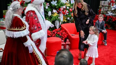 Ameriška prva dama Melania Trump je v petek v skladu s tradicijo pred božično-novoletnimi prazniki obiskala bolne otroke v eni od bolnišnic v Washingtonu. V lično urejeno preddverje sta jo pospremila enajstletni fant in petletna deklica, tam pa se je 55-letnica udobno namestila v velik rdeč naslonjač ob okrašenem drevescu.