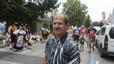 Za petdeseti rojstni dan si jo je zaželel tudi igralec Jernej Kuntner, ki jo je s ponosom predstavil na festivalu. »Od nekdaj sem imel rad folkloro, včasih sem tudi plesal, znal sem vse plese stare Jugoslavije. Vedno pa sem si želel imeti gorenjsko nošo in sem si jo pred štirimi leti tudi kupil,« ponosno razlaga in doda, da vseeno malo prestavlja meje, tako da je na primer srajco od noše pustil doma, pod telovnikom pa oblekel majico s kratkimi rokavi. »Klobuka pa ne maram,« se zasmeji v svojem slogu in se pridruži veseli druščini Petrovega hleva, ki je prišla s konjsko vprego. »Veste, malo sem domoljub, rad imam, da se to predstavi, zato pridem tudi sem in sem kar malo žalosten, da se v Ljubljani temu posmehujejo. Ampak meni je vseeno, meni je všeč. Rečem jim: 'Jaz sem oblečen po slovensko, vi pa po ameriško',« se zasmeji Kuntner, ki je bil tokrat na paradi že drugič.