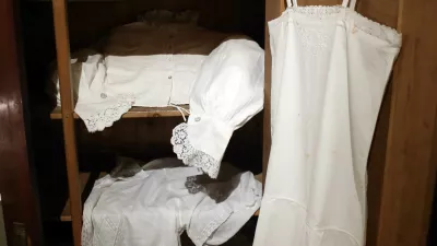 Omenjena tema je bila dolgo časa tabu, o njej se ni govorilo, a ker vedno pogledamo tudi pod obleko, posamezniku ta del veliko pove. »Poznamo zgodbe o balah, ki so jih nekoč dekleta prinesla v zakon. Premožnejša je bila družina, večja je bila bala in več kosov spodnjega perila je lahko imela. Tudi takšno za posebne priložnosti, morda z več vezenja, več čipke, več okrasja ... To je bilo odvisno od socialnega položaja družine. Perilo je bilo tudi prikladno. Spodnje hlače so imele na sredini med nogami izrez, luknjo, ker je bilo tako bistveno lažje iti na stranišče, saj vemo, da so imele ženske široka krila, pogosto v več slojih,« nam Ana Kure pokaže primerek takšnih spodnjih hlač in vprašanje usmerimo v higienske vložke, saj v vitrini opazimo nekaj kosov, ki so za današnje čase povsem nepredstavljivi. Dekleta in ženske si seveda niso mogle privoščiti higienskih vložkov, zato so si jih naredile same iz starih krp ali pa so razrezale brisačo ter si to z gumbom pripele na opasnik – tako je vložek obstal tam, kjer je moral biti. Seveda so morale vse to redno prati.