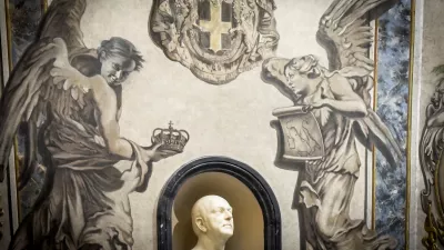 To pa se je spremenilo z nedavno restavracijo freske. Po poročanju italijanskega časnika La Repubblica je eden od angelov dobil obrazne poteze, ki močno spominjajo na italijansko premierko Meloni. Angel v roki drži trak z obrisom Italije v obliki škornja, medtem ko drugi angel izroča krono osramočenemu vladarju.