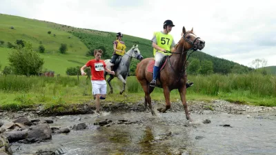 Začelo se je leta 1979 kot posledica stave v gostilni, ko sta se Valižana Gordon Green in Glyn Hones spraševala, kdo bi zmagal na maratonu – konj ali človek. Pa preverimo v praksi, sta si dejala, udarila v dlani, spila vsak svoj vrček … In od takrat poteka v Welsh Townu v Walesu vsakoletni 22-miljski (35,4 kilometra) maraton, na katerem tečejo ljudje in konji. Če zmaga človek, je upravičen do 40.000 evrov denarne nagrade, a se je doslej le dvakrat zgodilo, da na cilj ni prvi pritekel konjiček.