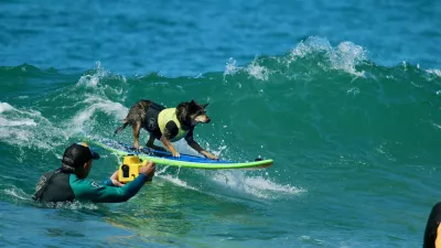 Ko pomislimo na Havaje in zalive v Kaliforniji ali na Floridi, se nam pred očmi pojavi slika deskarjev na valovih, a le malokdo bi na desko postavil psa. Pa so se tega vseeno domislili leta 2006 pred enim izmed hotelov v bližini San Diega v ZDA, kjer so priredili tekmovanje psov, ki jahajo valove na deskah, sami ali v spremstvu gospodarjev. Odmevnost tekmovanja je sprožila več podobnih dogodkov, ne le v ZDA, tudi v Avstraliji in Veliki Britaniji. Gre tudi za humanost, saj gre izkupiček v dobrodelne sklade.