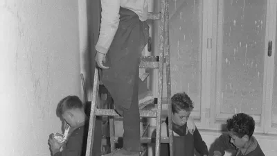Leto 1960. Pionirji osnovne šole Vide Pregarc pomagajo pri obnovi prostorov. / Foto: Marjan Ciglič, hrani Muzej novejše in sodobne zgodovine Slovenije