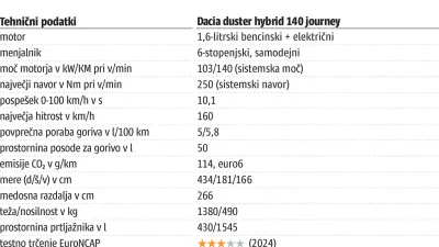 Duster je prvinsko namenjen dvema osebama, čeprav lahko odigra tudi vlogo družinskega avta. Na zadnji klopi so namreč centimetri za glavo in kolena odmerjeni razkošno, prtljažnik z dvojnim dnom že v osnovi pogoltne 430 litrov, kar je dovolj za štiri letalske kovčke. Če pa se bo zanj odločil športni par brez otrok, bo to zadetek v polno – če bo treba, bosta zadnjo klop enostavno podrla, v zadek pa brez večjih težav zložila dve (gorski) kolesi. Škoda je le, da prtljažna vrata, ki so precej zajetna, niti za doplačilo ne premorejo pomoči elektrike. Je duster najboljša dacia doslej? Zagotovo. K odločitvi za nakup lahko pomaga tudi njegova cena, ki je v kombinaciji z visoko stopnjo opreme journey 27 evrskih tisočakov ali – prevedeno – občutno manj od konkurence. Je pa res, da ta avto ni več tako zelo poceni, da bi bili v ceniku zapisani evri glavni razlog za nakup. Kupiti ga ali ne kupiti? Za nas dileme ni, saj nam je novi logotip znamke posebej všeč.