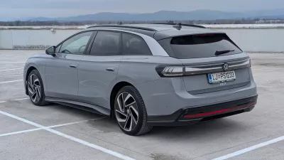 Vožnja z ID.7 tourerja je izredno uglajena in gosposka. Tišina električnega pogona v kombinaciji z dinamično nastavljivim vzmetenjem, ki je bil del dodatne opreme testnega avtomobila, pričara nadvse udobno in odzivno izkušnjo. Je pa zaradi dolžine avto veliko bolj doma na cestah kot na mestnih ulicah. Z 286 konji (210 kW) ob teži 2290 kilogramov je tudi dovolj poskočen za družinski avto. Do stotice potegne v 6,5 sekunde, najvišjo hitrost pa ima pri 180 km/h. Vse to je dobro, je pa kljub pogonu na zadnji kolesi težko reči, da avto med vožnjo pričara iskrico v očeh. Bolj kot karkoli drugega skrbi, da se tudi princeska na zrnu graha težko pritožuje.