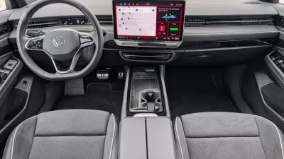 V notranjosti najdemo kombinacijo maksimalizma in minimalizma. V prvo kategorijo pade velika multimedijska tablica. Prek nje oziroma digitalnih »gumbov« pod njo urejamo vse funkcije avtomobila, vključno s klimo in celo smerjo pihanja zraka iz zračnikov. Nič več ročnega nastavljanja šob. Nekaterim je to všeč, mnogim ni. Isti koncept »gumbov« imamo tudi na volanu. Za volanom pa najdemo najmanjši možni zaslon, ki še omogoča prikaz ključnih informacij. Gre verjetno za tisto oblikovalsko gesto, ki sem si jo pri avtomobilu najbolj pozitivno zapomnil. Stvar je tudi funkcionalna. Zlasti v kombinaciji s projiciranjem podatkov na vetrobransko steklo, ki je serijsko. Tudi sicer je notranjost odločno minimalistična, a daleč od špartanske. Prednja stola sta udobna in serijsko masažna. Uporabljeni materiali so prijetni, obstaja pa tudi ambientalna osvetlitev. Na trdo plastiko naletimo šele v nivoju čevljev, kar pa tudi ni sporna odločitev. Prostora za odlaganje je dovolj. So pa tudi manj posrečeni primeri minimalizma. Voznik ima le dva gumba za spuščanje in dvigovanje šip. Če želi upravljati šipe na zadnjih vratih, mora pritisniti dodatni gumb za preklop na slednje. Namesto štirih gumbov imamo torej … tri. Zelo »učinkovito«.