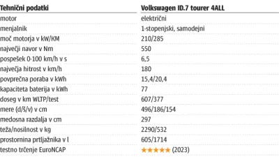ID.7 tourer sodi v tisto kategorijo Volkswagnovih avtomobilov, ki ne poskušajo navdušiti z nečim izjemnim, temveč z odsotnostjo neprijetnega. To avtomobilu v veliki meri uspeva, vožnja z njim pa je že skoraj meditativna izkušnja. Zlasti z vklopljeno masažo. Je pa vse to treba plačati. Izhodiščna cena testnega modela z opremo 4ALL znaša 57.493 evrov. Če dodamo še vso dodatno opremo, ki jo je imel testnež, je cena še precej manj ljudskih 65 tisočakov.