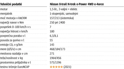 V praksi vse to pomeni zelo uglajeno in mirno, celo pomirjajočo vozno izkušnjo, ki pa postane nekoliko bolj zabavna, šele ko imamo težjo nogo in vozimo bolj dinamično. Avto pa se tudi povsem uglajeno vede, ko ga tako preganjamo po cesti. Nissan X-trail e-power je nadvse nenavaden koncept, ki v resnici nagovarja dokaj omejeno nišo kupcev. A takšni kupci zagotovo obstajajo in verjetno imajo tudi družine. X-trail e-power odgovarja na obe potrebi. Je pa za to treba plačati kar zajeten znesek. Ko sta v igri pogon na vse štiri kolesa in še bogata oprema N-trek, to nanese 47.200 evrov.