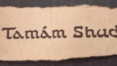 Besede so objavili v časnikih in nekdo jih je le prepoznal. Izkazalo se je, da ti besedi v perzijščini pomenita »končano je« (ali »dokončano«) in da tvorita zadnjo frazo Rubajatov Omarja Hajama, zbirke perzijskih pesmi. Policija je sprožila vsesplošno iskanje izvoda knjige, iz katerega je bil ta košček iztrgan.
