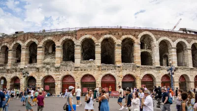 The ancient Roman amphitheater of Verona, known as the Arena, stands in Piazza Bra surrounded by tourists and summer visitors / Foto: Gianluca Pugliese