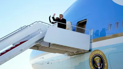 Donald Trump in Melania ob slovesu pred štirimi leti. Letalo ima tudi močan simboličen pomen. / Foto: AP