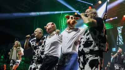 Začetek koncerta je bil, no, agropopovski. Brez laserskih šovov ali dramatičnih uvodov simfoničnih orkestrov. Tema, nato pa zvok, ki ga v Tivoliju redko slišimo: mukanje krav in kikirikanje petelinov. Dvorana je eksplodirala v smehu. To je bil tisti sproščeni, domači humor, ki je dal vedeti, da se ne bomo jemali preveč resno.