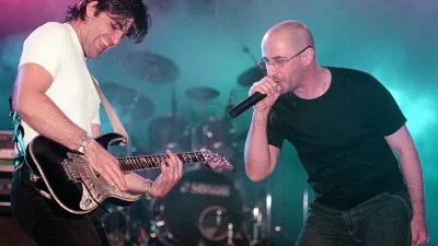 Bor Zuljan, na fotografiji z Miranom Rudanom, je s skupino Šank Rock zaigral novo skladbo Danes je dan. Foto: Bojan Velikonja