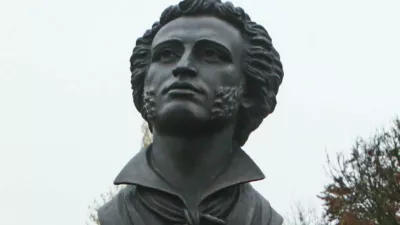 Doprsni kip ruskemu pesniku Aleksandru Puškinu v Ljubljani / Foto: Luka Cjuha, dokumentacija