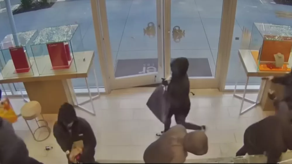 Nadzorne kamere so ujele prizore, kako oboroženi storilci drug za drugim vdirajo v trgovino, razbijajo vitrine in praznijo police z nakitom. Vrata so se pri tem samodejno zaklenila, sprožil se je tudi alarm. Roparji so zato v vrata sprožili več strelov in jih tako poškodovali, da so lahko pobegnili.