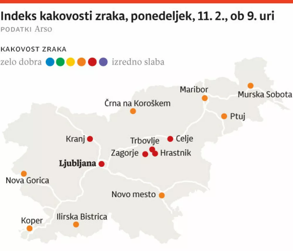 Na spletni strani agencije za okolje lahko spremljamo, da so bila včeraj zjutraj v Ljubljani vsa tri merilna mesta obarvana rdeče. Pri tej barvi svetujejo »zmanjšanje intenzivnih dejavnosti na prostem, če občutite simptome, kot so vnete oči, kašelj ali vneto grlo«. Za ranljive skupine pa na splošno svetujejo zmanjšanje aktivnosti na prostem. Raziskovalka Maja Remškar z Inštituta Jožefa Stefana (IJS) je pojasnila, da se kritične vrednosti, ko morajo odločevalci ukrepati, izračunajo na podlagi povprečnih dnevnih vrednosti. »Iz dosegljivih podatkov lahko razberemo, da v Ljubljani glede na dnevno povprečje še nismo presegli opozorilnih vrednosti. Se jim pa približujemo. Dejstvo je, da je zaradi geografskih danosti onesnaženje zraka v Ljubljanski kotlini resen problem, saj je v zavetrju,« je še dodala strokovnjakinja. Na agenciji za okolje pa pojasnjujejo, da rdeča barva na merilniku ne pomeni, da je izdan rdeči alarm. »Prvo priporočilo je gotovo nošnja kirurške maske, kot smo jo nosili v času epidemije, saj odlično filtrira delce v zraku,« je kot glavni nasvet za te dni izpostavila strokovnjakinja.