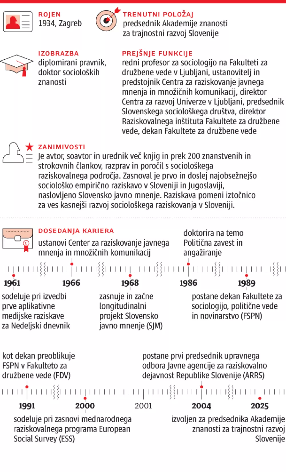 Rodil se je leta 1934 v Zagrebu, odraščal v Ljubljani in leta 1958 diplomiral na Pravni fakulteti. Zgodaj je spoznal, da ga bolj kot črka zakona zanima človek v družbi. V začetku šestdesetih je sodeloval pri prvi aplikativni raziskavi o medijih za Nedeljski dnevnik in se navezal na empirično delo, ki je zaznamovalo njegovo kariero. Iz te izkušnje sta zrasli načeli, ki jima je ostal zvest: metodološka strogost in spoštljiv odnos do anketirane javnosti, ki je v njegovem delu sogovornik in ne objekt.