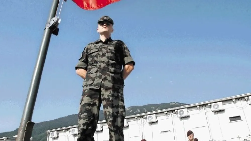 V postroju je plapolala tudi trobojnica, po barvnem vzorcu identična zastavi RS, vendar brez grba Slovenije. Domnevamo lahko, da so v postroju želeli izpostaviti tradicionalno slovensko trobojnico, ki pa ni uradna zastava naše države. Ker pa v tem delu navajamo zgolj dejstva, je pač treba zapisati, da so se pripadniki tako imenovane ŠV dejansko postrojili pod uradno zastavo Ruske federacije. Formalno gledano je ruska trobojnica v tem postroju zadostna podlaga za delovanje Sove.