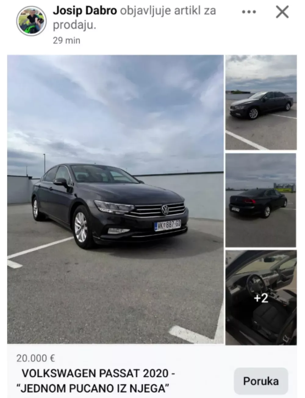 Oglas za prodajo vozila, ob katerem piše: "Enkrat streljano iz njega". Foto: Zajem zaslona